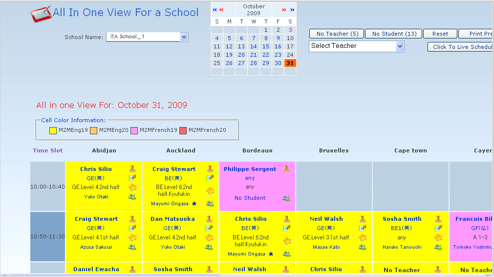 This is an online School Management System supporting all the necessary work-flows on line. All the users ( student, teacher, management staff, parents ) can log on to the system from anywhere on internet and can play their respective